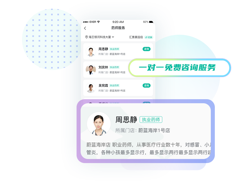 会员服务、医保查询、用药咨询等便民服务,一对一解答用药问题。