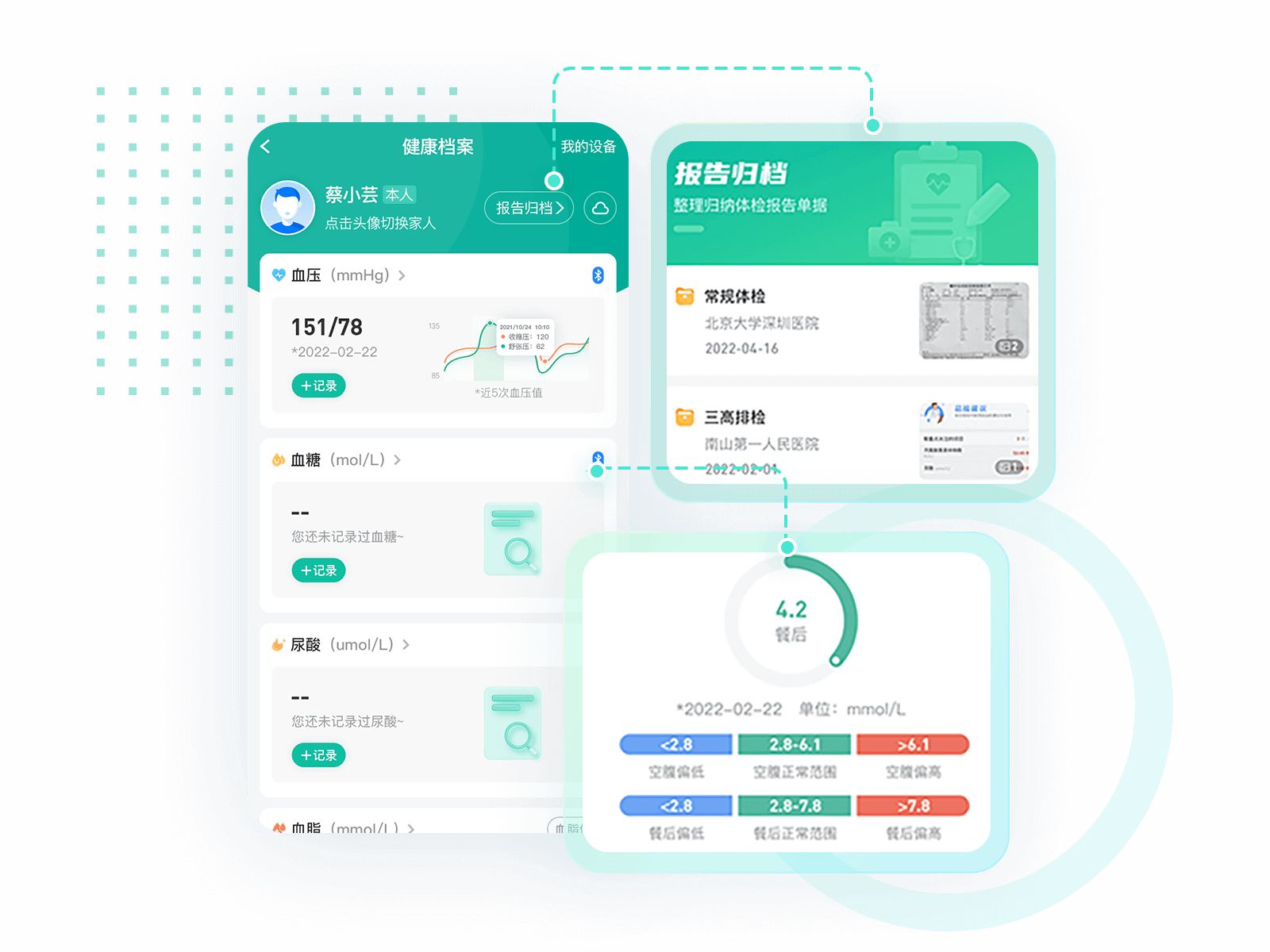 用户可手动或通过智能设备接入,记录自己和家人的健