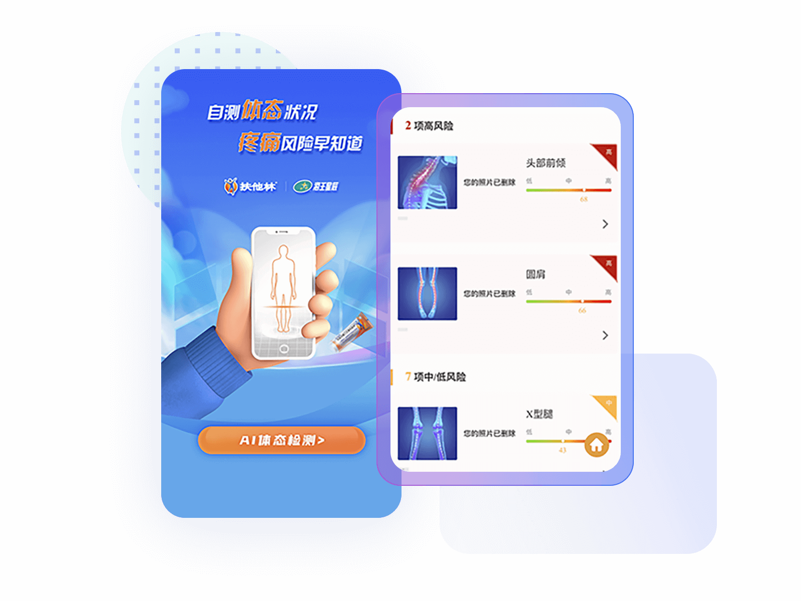 结合大数据智能AI算法,为用户提供体态检测。