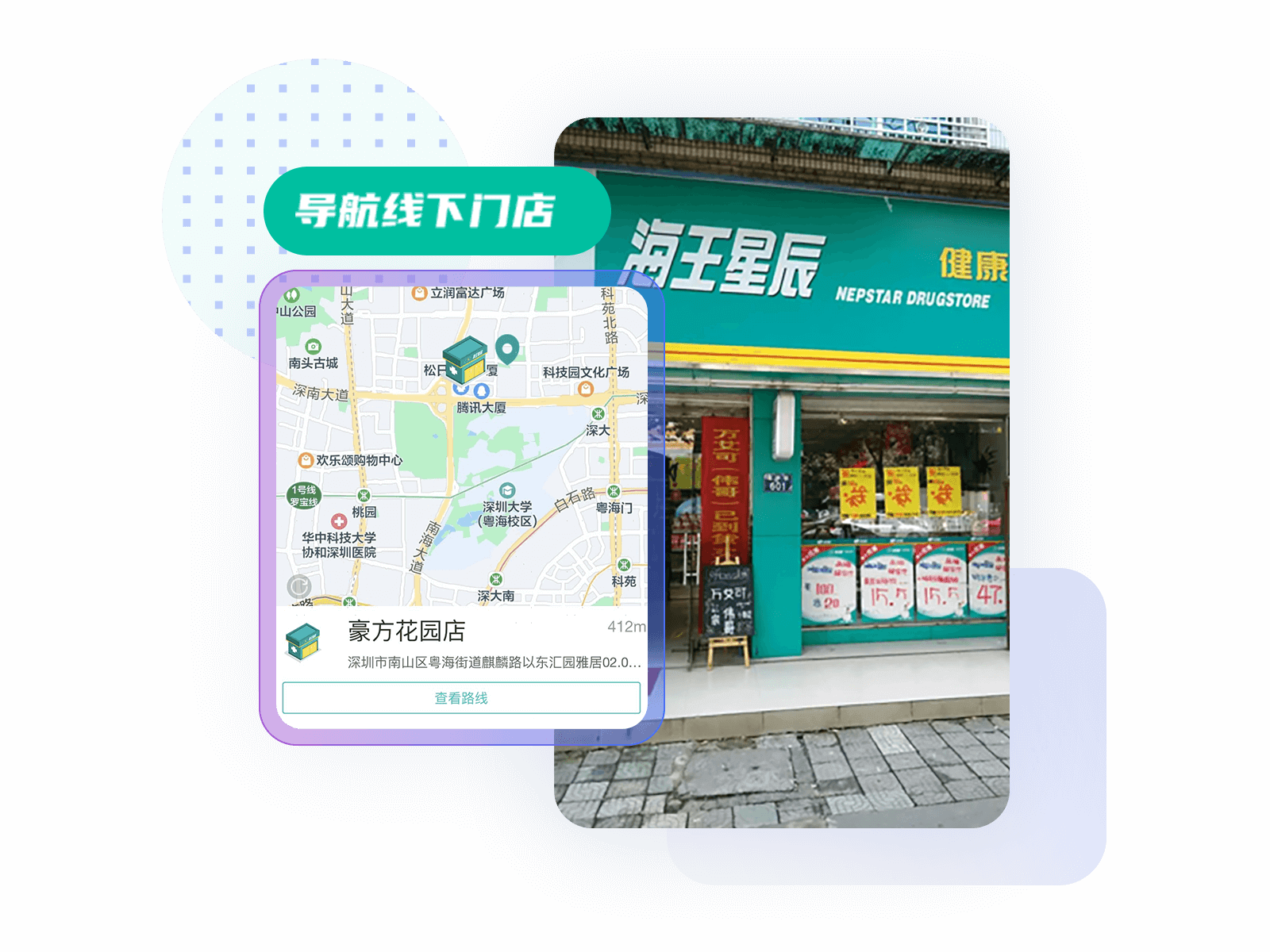 查找附近药店,导航线下门店。