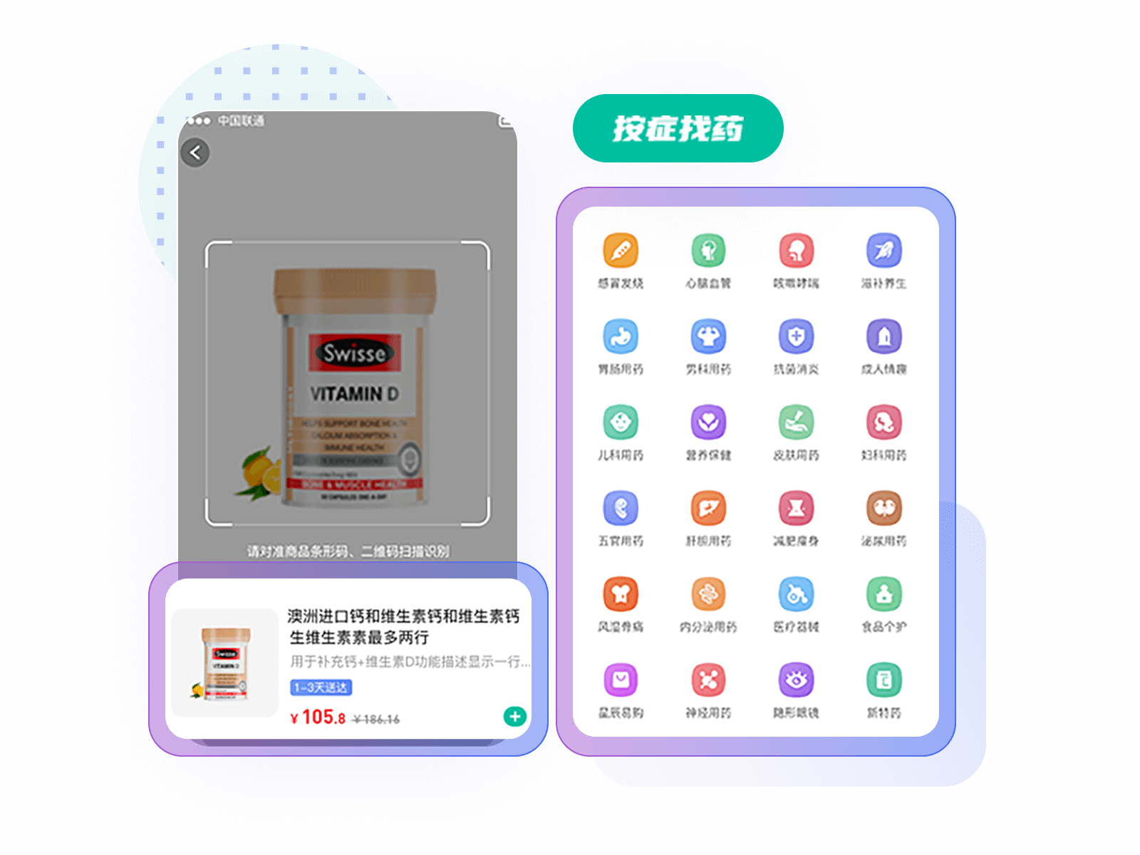 为用户提供:按症找药、扫码找药等多种便捷找药方式